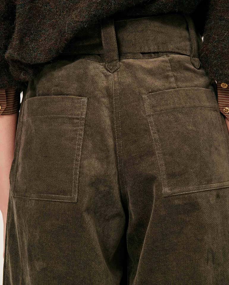 Wide-leg trousers in short-pile velvet basket-weave fabric with a moiré effect.