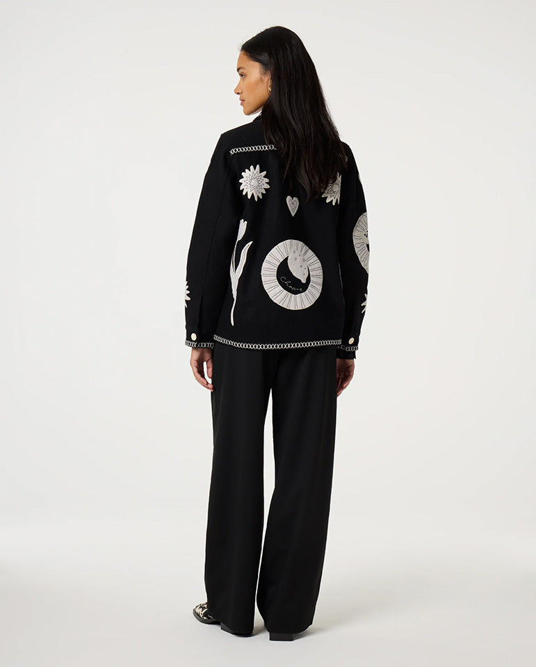 The Elias Jacket is a modern outer layer that balances sharp tailoring with everyday wearability in it's black and white design.
