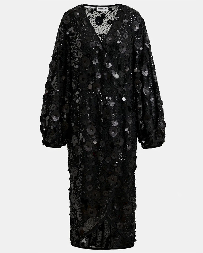 Ishine Sequin Wrap Dress Black