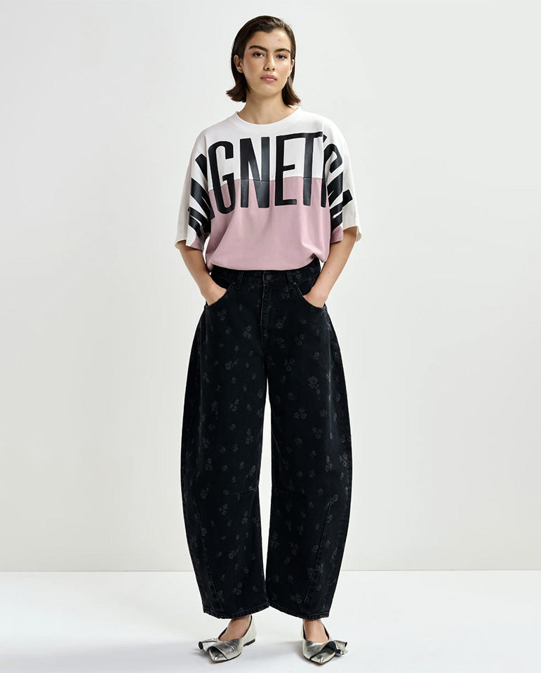 These EA jeans feature a high-rise waist and a cropped fit, cut into a contemporary barrel-leg silhouette...