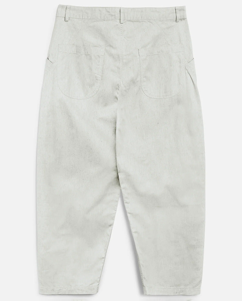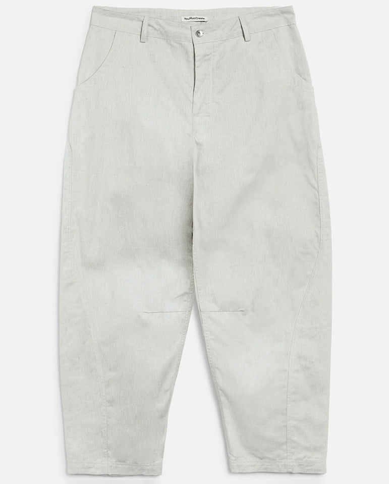 Recycled cotton blend trousers from our friends at YMC, with curved front and back patch pockets and a low-rise, relaxed fit. They have a twisted seam construction and dry wax coated finish.