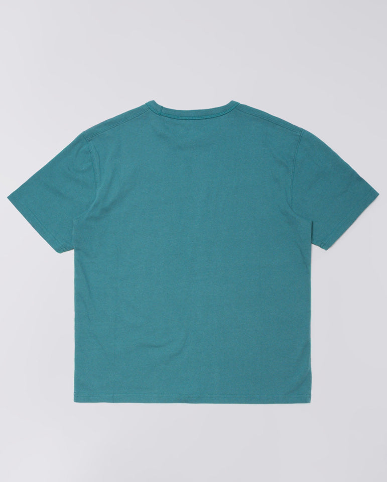 The Regular Basic T-Shirt is a regular fitting short sleeve made from a Single Cotton Jersey, presented in the blue/green 'Mediterranea' hue. Finished with an Edwin Katakana tab and a woven side label.