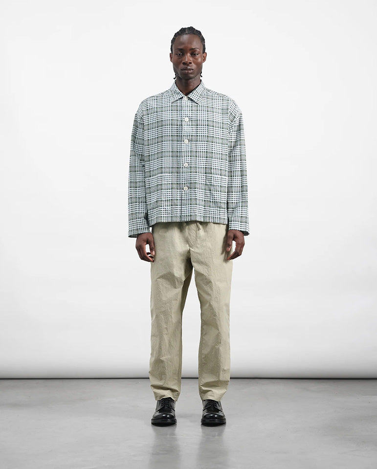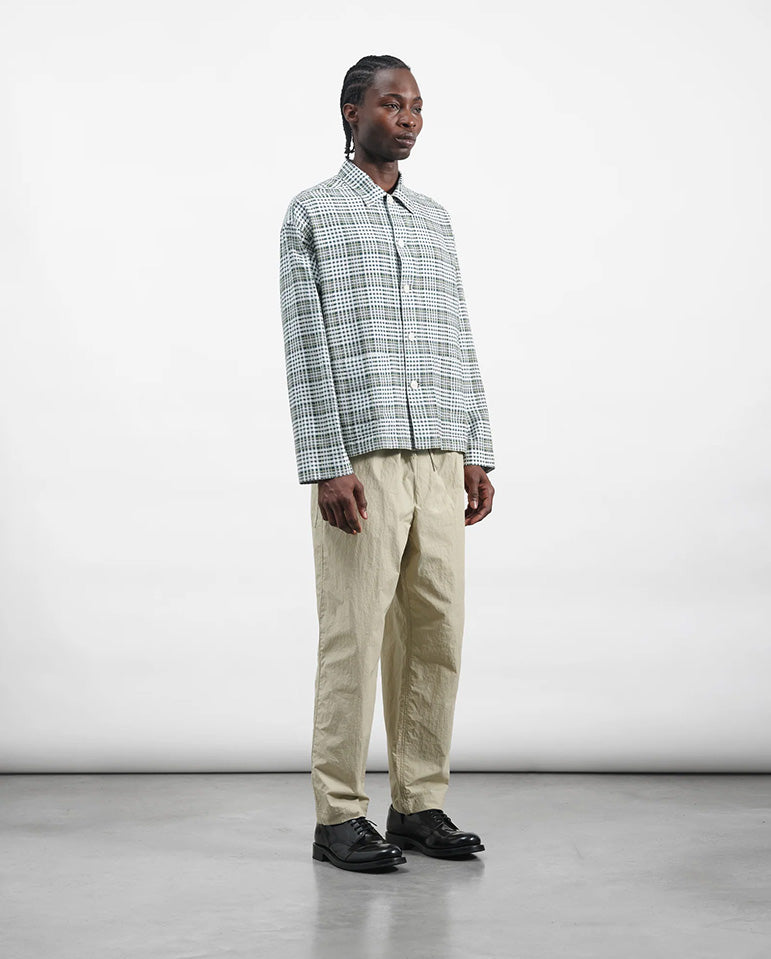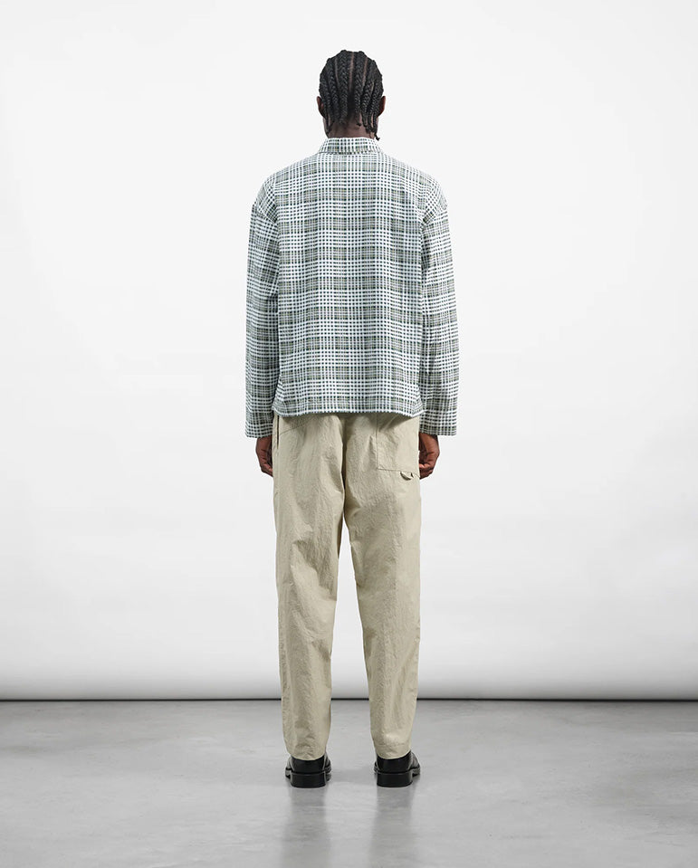 Tapered drawstring trouser, designed for a relaxed fit in a technical recycled cotton blend fabric. Features two side seam pockets, a back patch pocket and an elasticated drawstring waistband for all day comfort.