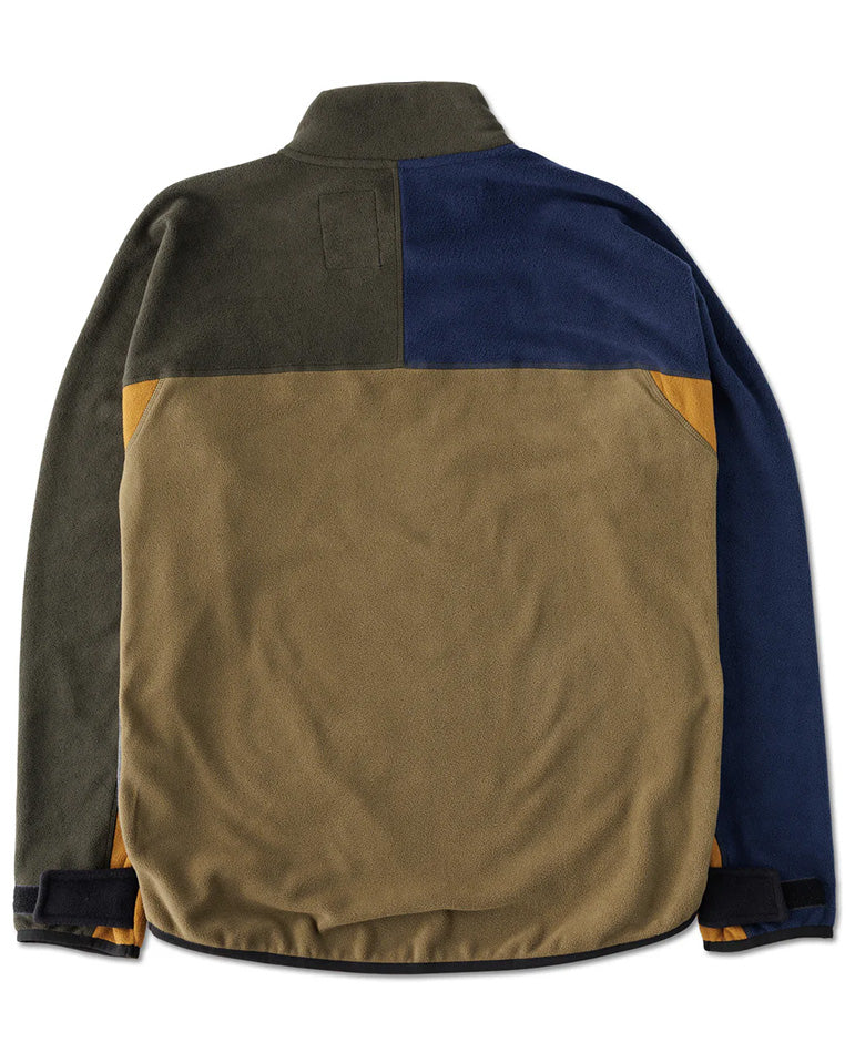 High neck fleece with a zip mock-neck collar, single chest pocket, two lower hand-pockets and drop-tail hem. The cuffs are adjustable, so no heat is escaping!