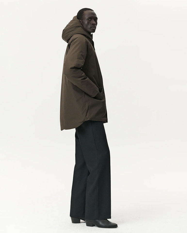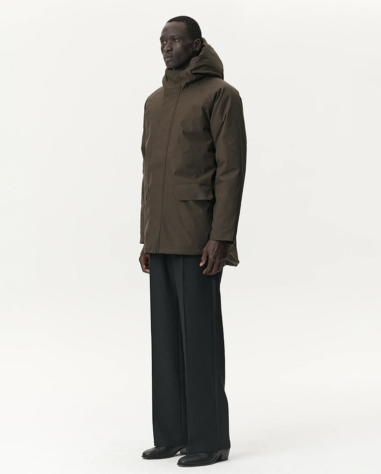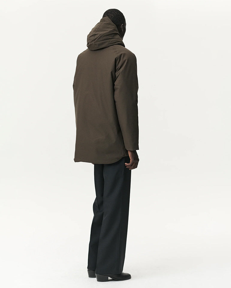 Two layers of super smooth technical polyester fabric, insulated with recycled polyester create a fully waterproof, windproof, and breathable coat with a 20,000 mm water column. A durable, contemporary piece that balances style, function and weather protection.
