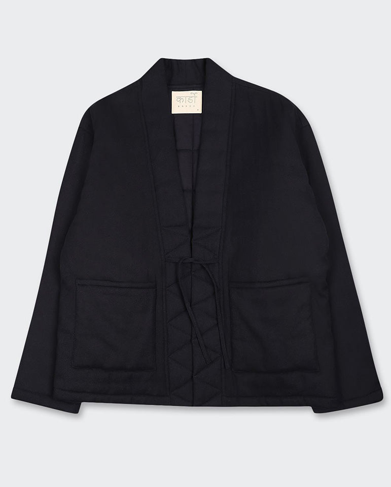 Kardo's 'Osaka' jacket carries the impression of a kimono - open through the body and drawn close with a simple tie...