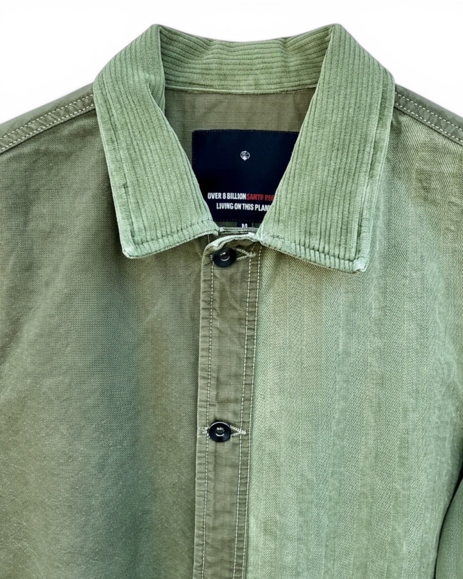 Finished with a khaki back panel, classic collar in corduroy and corozo button down front.
