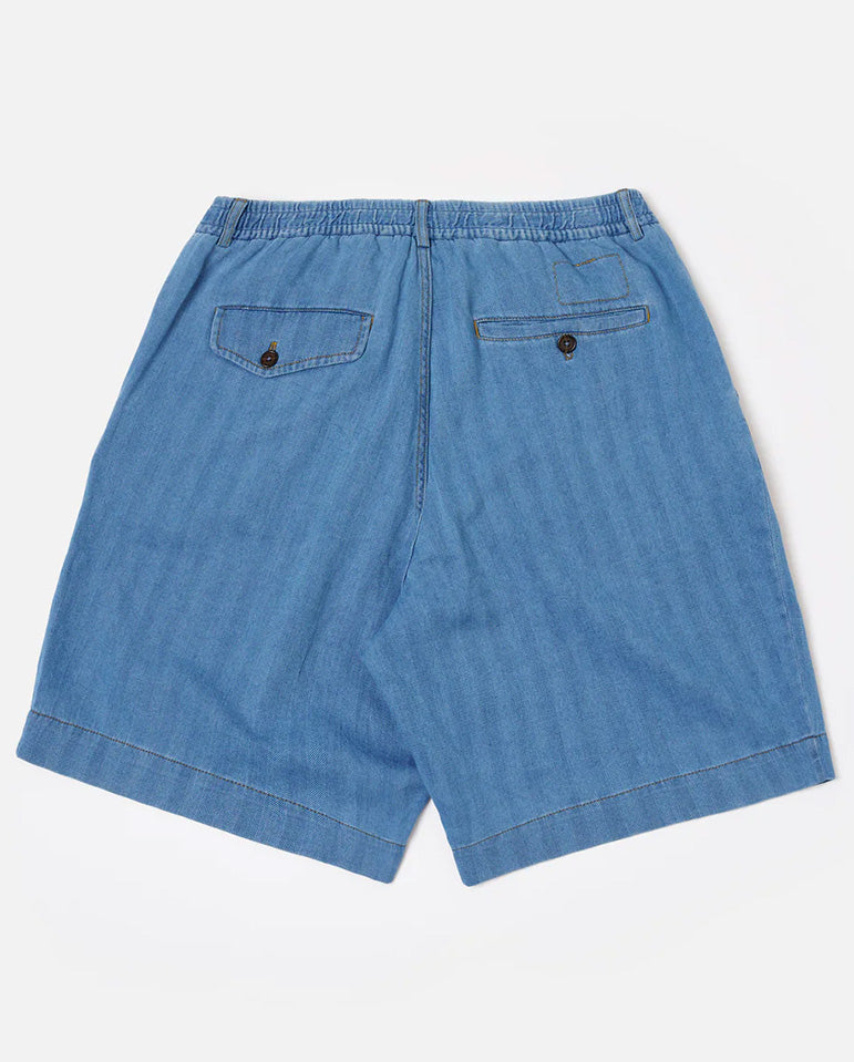 Pleated Track Short - Washed Indigo