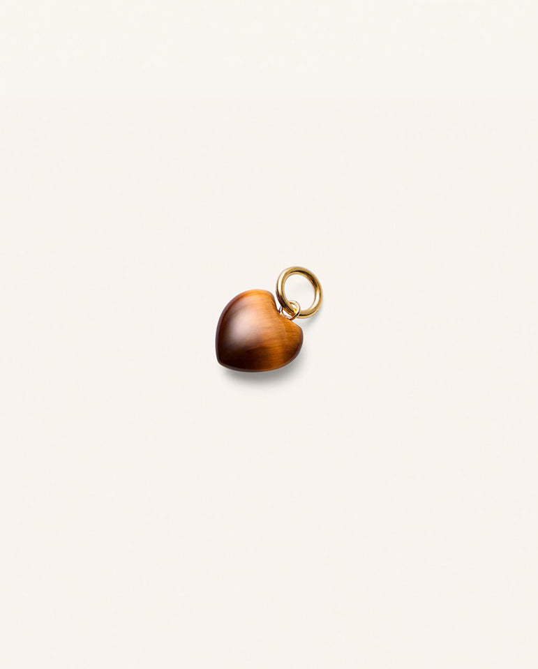 Delicate, heart-shaped pendant crafted from natural Tiger Eye stone. Available with Silver or Gold detailing to match your chain accordingly.