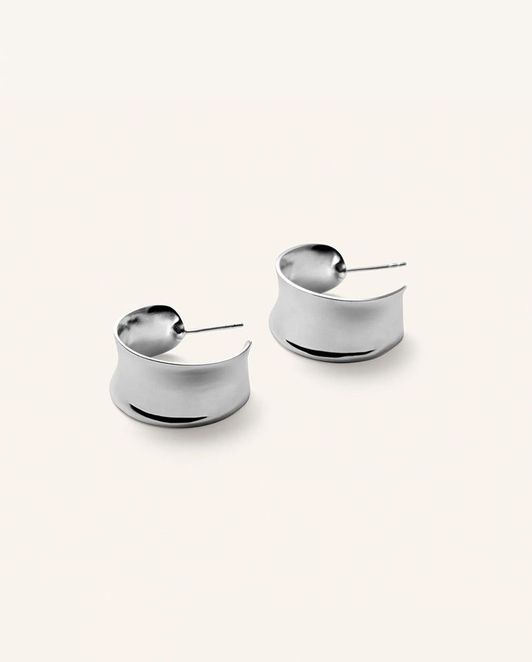 Pernille Corydon's Reflection Hoops are wide statement earrings, the shape is curved with a mirror-like polished surface.