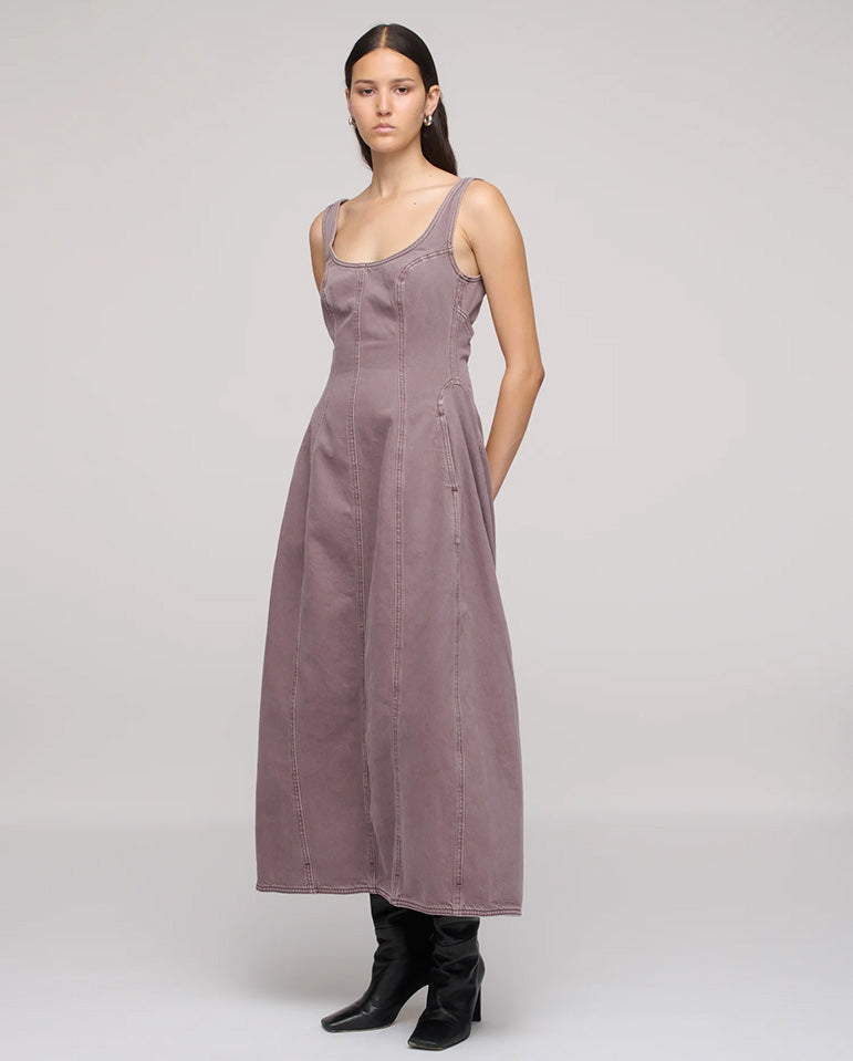 This dress has been washed with a low-impact process that reduces water and chemical use. See label for washing instructions.