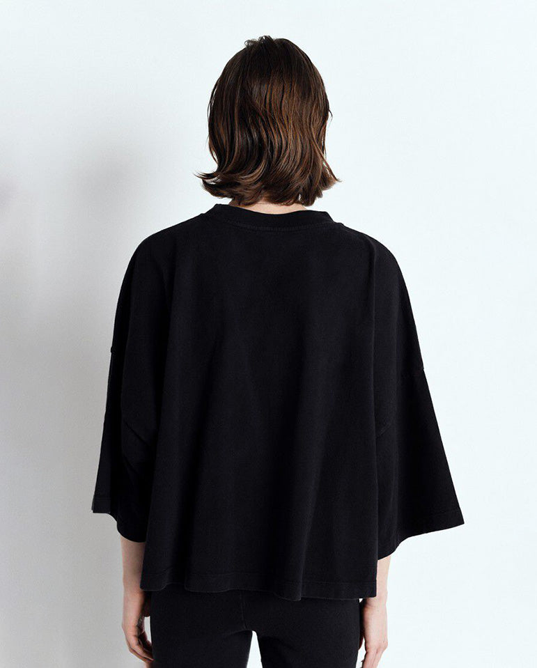 Short-sleeved T-shirt with a round, loose fit. Finished with exaggerated sleeves in classic black.