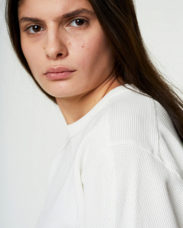 Made in Portugal from an organic cotton blend with baby waffle structure.
