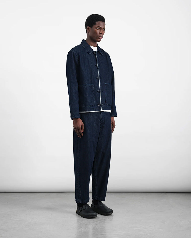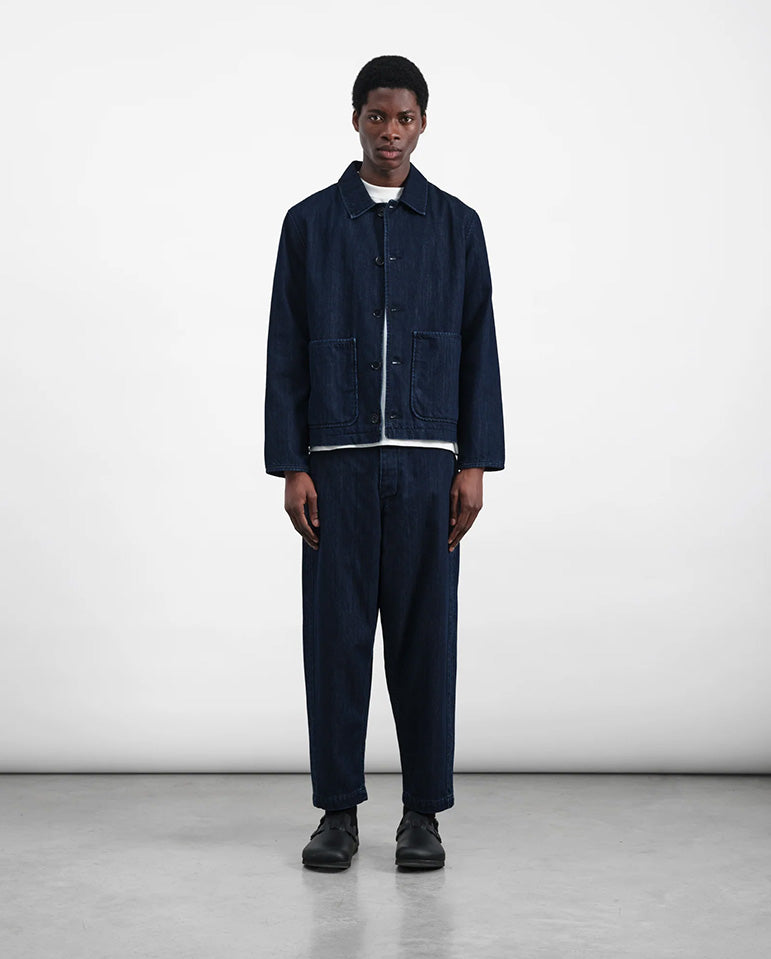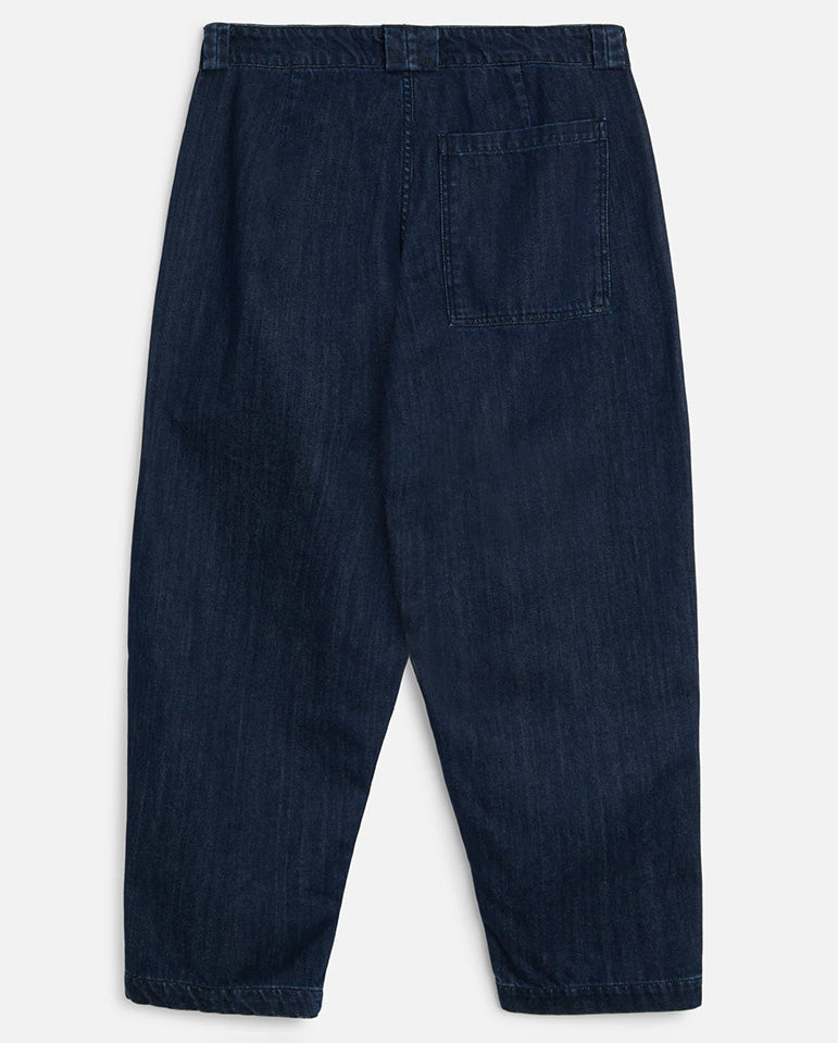 A homage to left handed pitcher, Babe Ruth, through what I'm sure he would agree are a perfectly pitched pant... Tapered relaxed trouser crafted in garment dyed cotton twill. Features a fabric taping down the side seams, front slit pockets...
