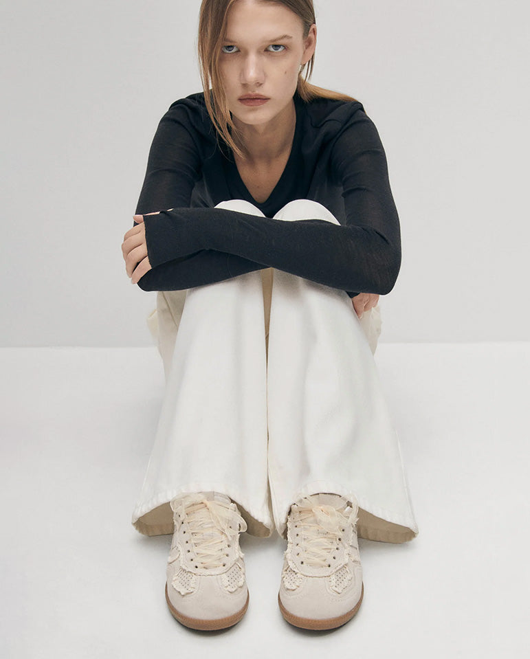 The delicate crochet features on Alohas Tb.490 trainers bring a romantic twist to this classic urban style... Cream sneakers with crochet trims, crafted from cream suede and designed in a low-top silhouette sitting on rubber soles. The style is completed...