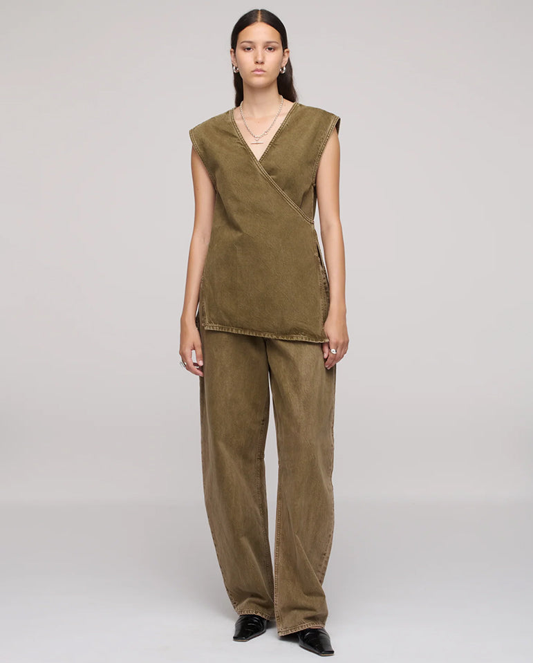 Wrap until your heart's content... The Wrap Top features a V neckline, functional front wrap panels with a waist tie and side splits. Made from rigid Italian denim in 100% organic cotton. This garment was washed with a low-impact process...