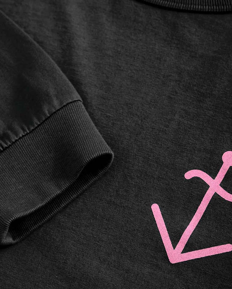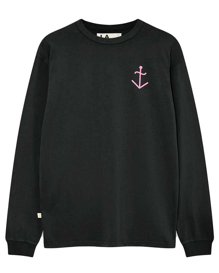 T-shirt weather is behind us, but it's not quite jumper season yet... Note: Picture is darker, this should be a mid grey colour. Black long sleeved tee with La Paz chest logo in 'Bubble', let the Feiljó be your light...