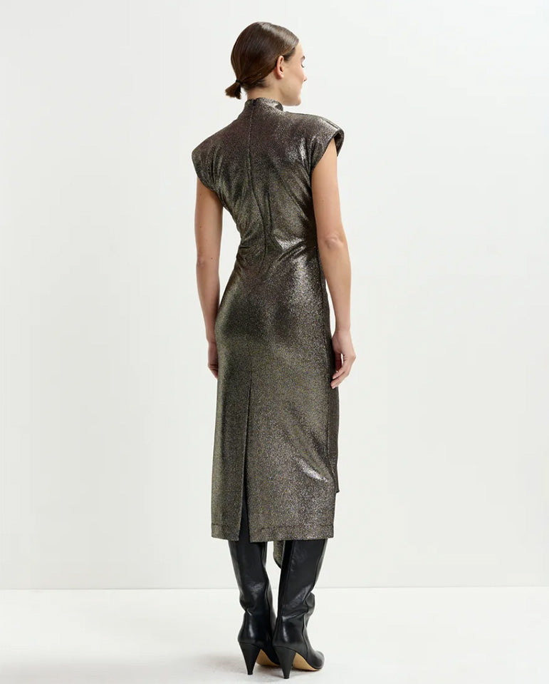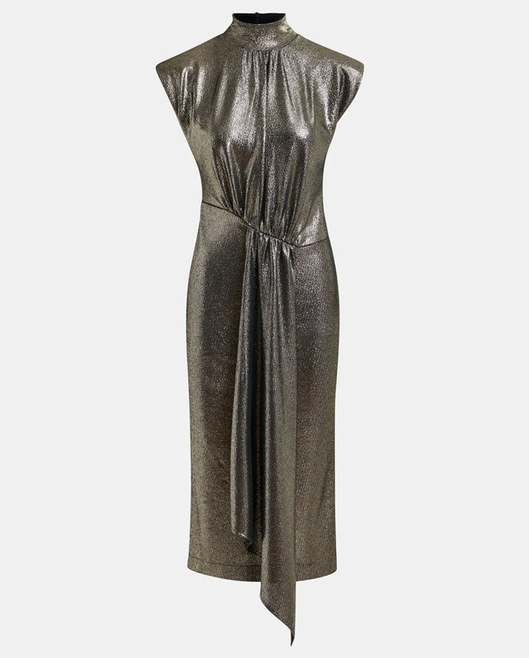 Essentiel Antwerp has you covered for party season... Midi dress cut from a lurex fabric for a glamorous, light-catching finish. It has a figure-hugging fit at the waist and a wrap-inspired skirt with box pleat gathering at the front. Finished...