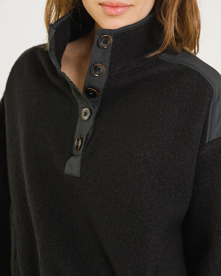 No fuss here - pull the Jaya over your head and pop out... A short, loose-fitting jacket in black boiled wool with a revamped sweatshirt style. It's unlined and features a round cut with dropped armholes and sleeves gathered with...