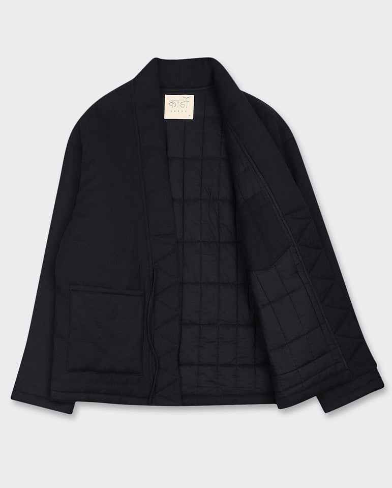 Kardo's 'Osaka' jacket carries the impression of a kimono - open through the body and drawn close with a simple tie... Shaped without sharp edges, this kimono style overshirt holds a subtle balance between fluidity and form. The silhouette rests...