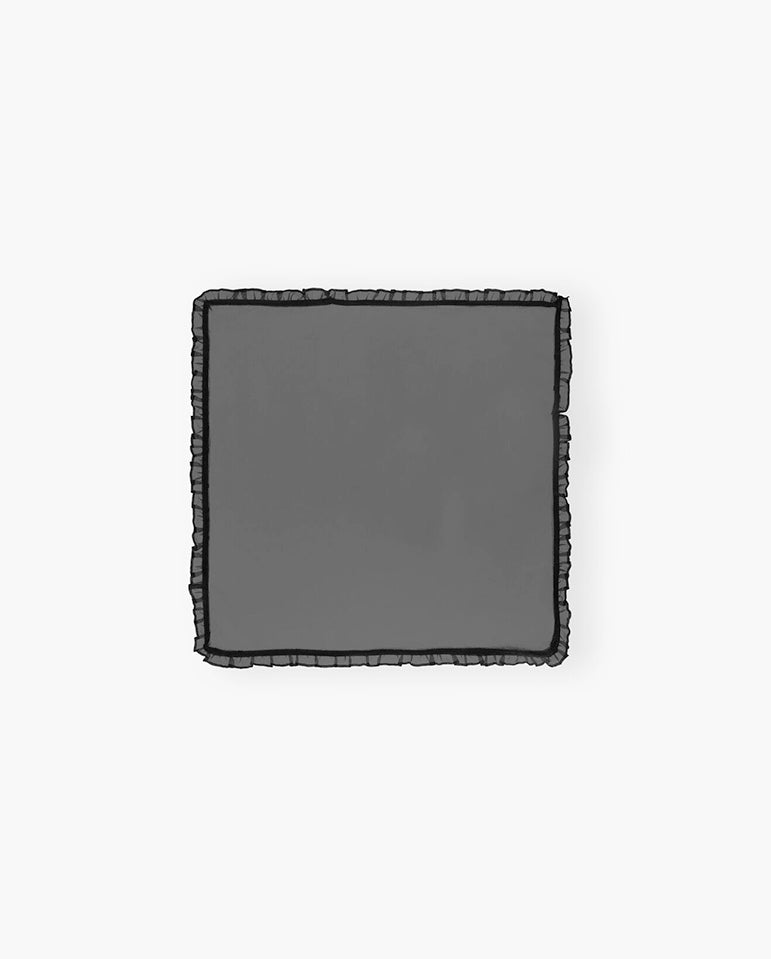 And for the finishing touches... This Black Technical Organza Frill Scarf features a ruffle detail and is the perfect addition to any outfit. Made from 100% recycled polyester.