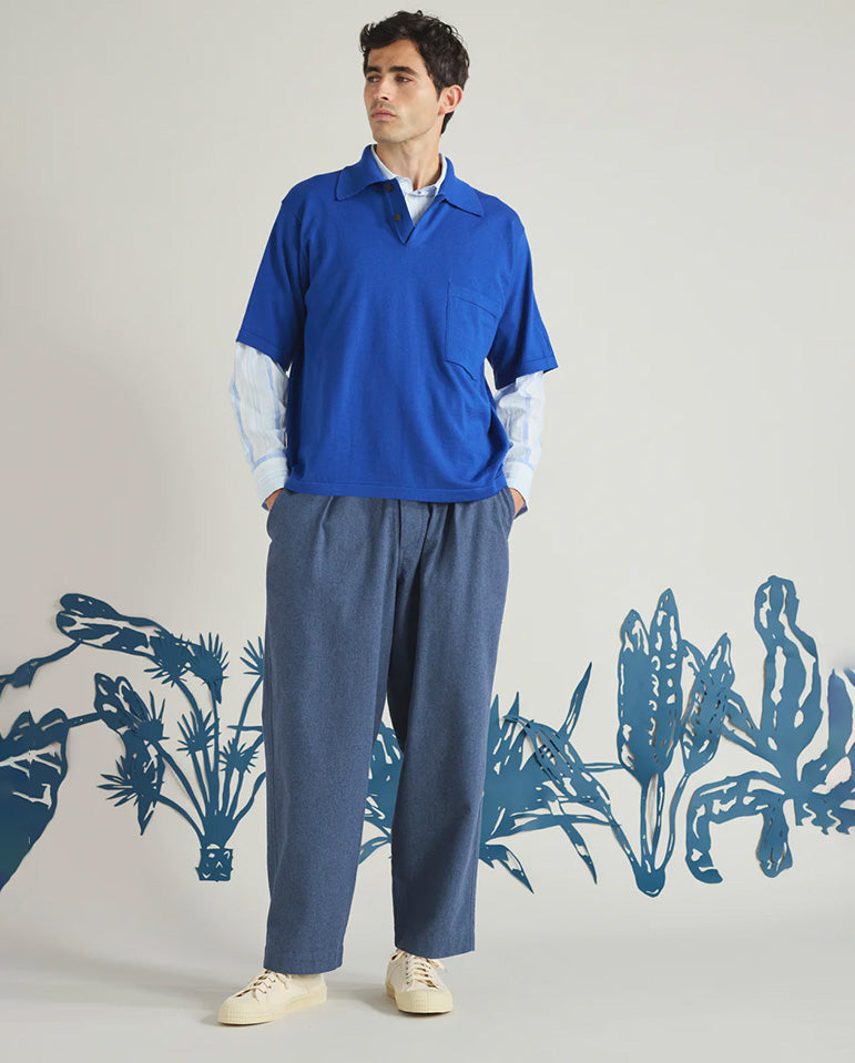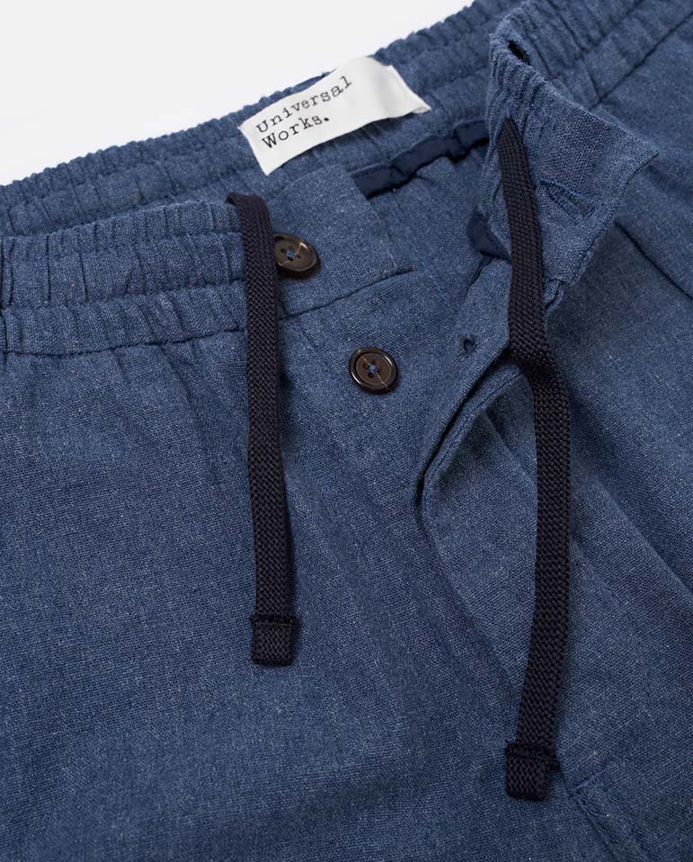 Quickly becoming a classic in the UW world: The Oxford Pant... Wide through the leg, these Universal Works trousers have a single pleat front, mid-height rise and a slight taper. Finished with an elasticated and drawstring waist for all day comfort,...