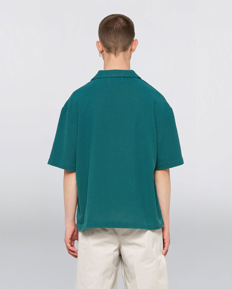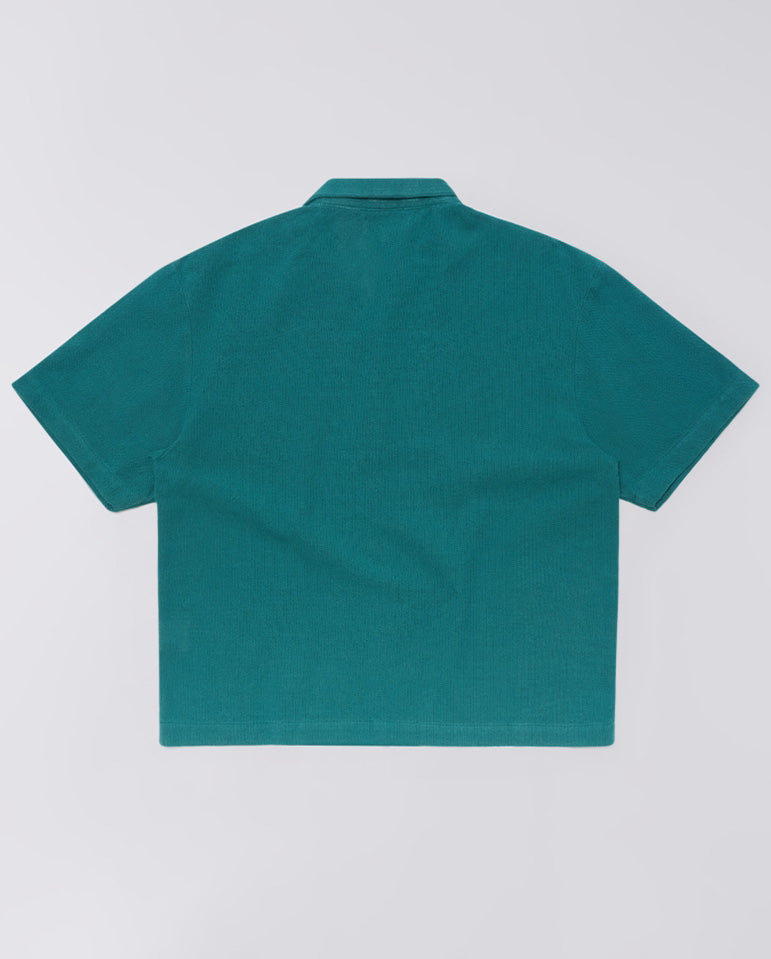 Let your hair down in an open collar with Edwin... A premium piece for warmer weather, the Saga Shirt is cut from pure cotton open-weave fabric. This textured knit material offers a relaxed drape and breathability, shown here in a 'Mediterranea'...