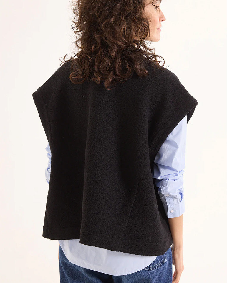 Layer under a jacket, or over a shirt, either way the Sonny Gilet will keep you toasty... Sleeveless, unlined round jacket designed for an oversized fit. Woven in Italy from boiled virgin wool, it features pleats in the back, large...