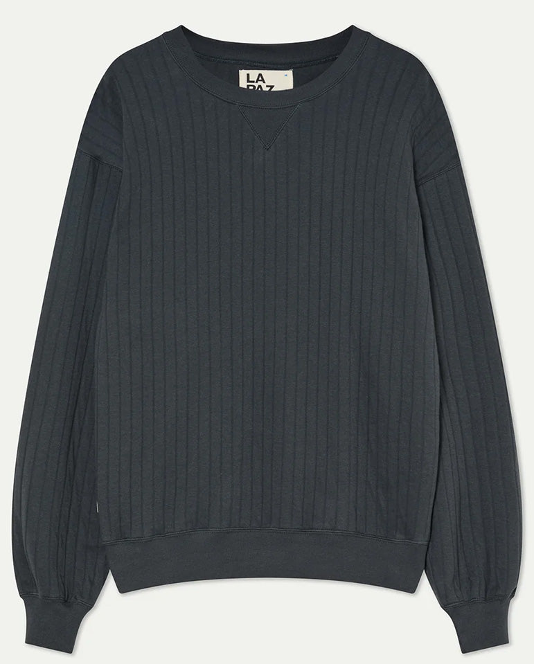 The fit is loose and the fabric is soft, sink into the Xavier sweat whether it's a night out or a night in... Classic style La Paz sweatshirt in soft ribbed black sand fabric with a classic V-stitch below the...